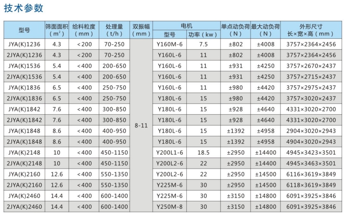 JYA(K)型(xíng)圓振篩由(yóu)振動源、篩體、篩網、減振裝置和底托組成,篩機(jī)側板采用優質鋼板製作而成,側板與橫梁、激振器底座采用高強度螺栓或環槽鉚釘連接,結構(gòu)合理,堅固耐用。