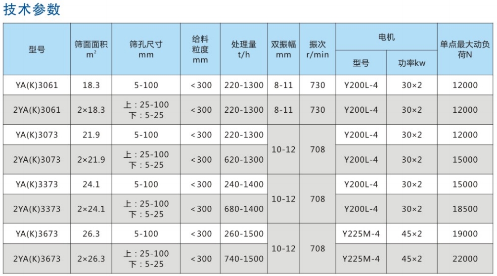 YA(K)係(xì)列大型圓振動篩物料運動軌跡為圓,是我(wǒ)公司針對礦山行業研製的大型篩分設備(bèi),它(tā)適合於物料粒度分級較大時使用,具有處理量大,篩分效率高,結實耐用,維護方便等特點。